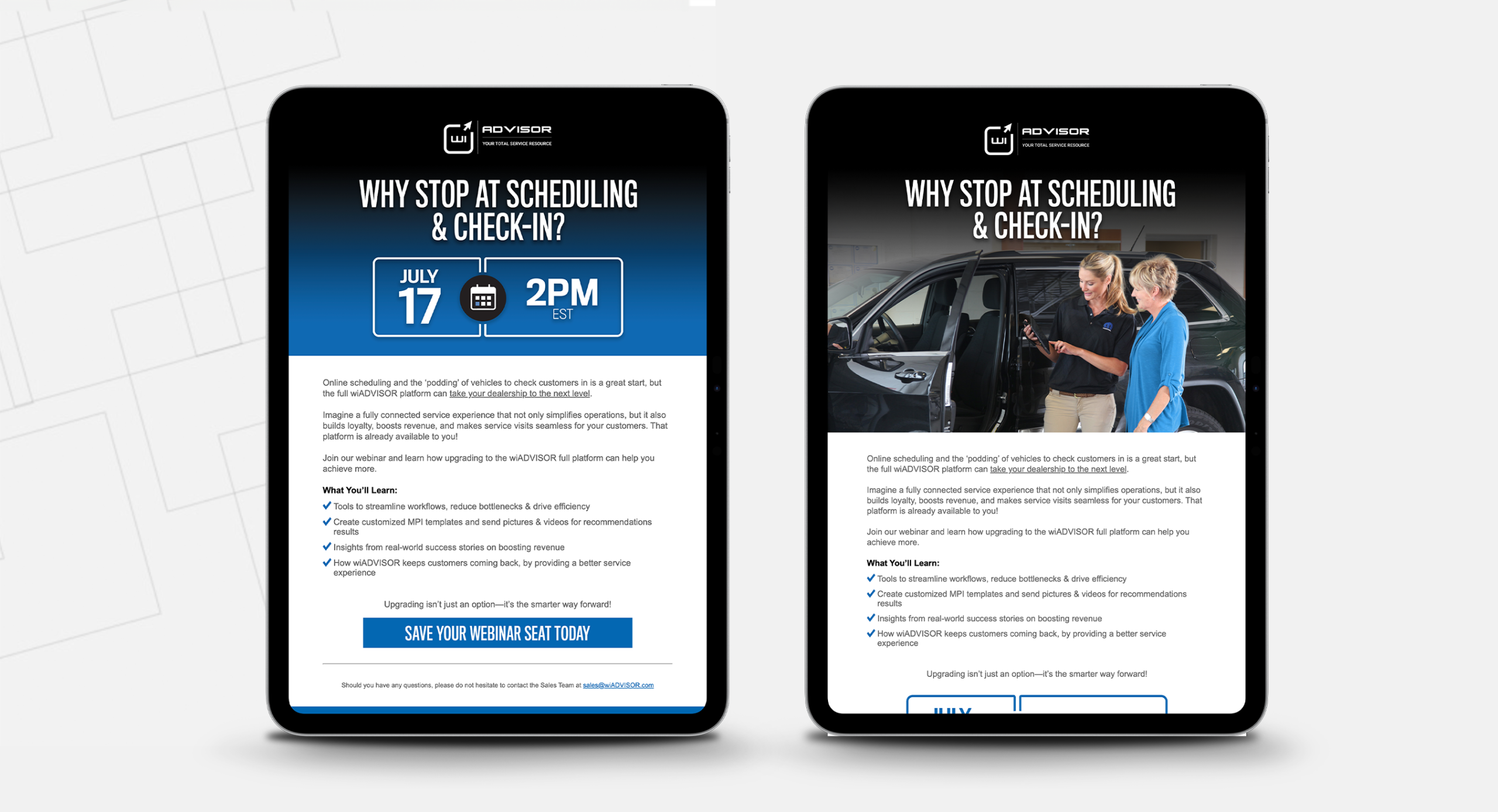 This email features a clean, streamlined layout designed to promote an upcoming webinar. I worked within Chrysler’s brand guidelines to create a cohesive look that keeps the focus on the key message. The design supports clear hierarchy and easy navigation, making it simple for recipients to engage and register.
